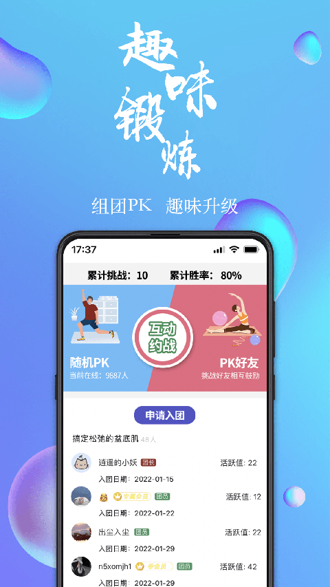 【互动PK】用户间进行训练PK,各种训练方式的玩法PK对战,勉励自己又激励他人。