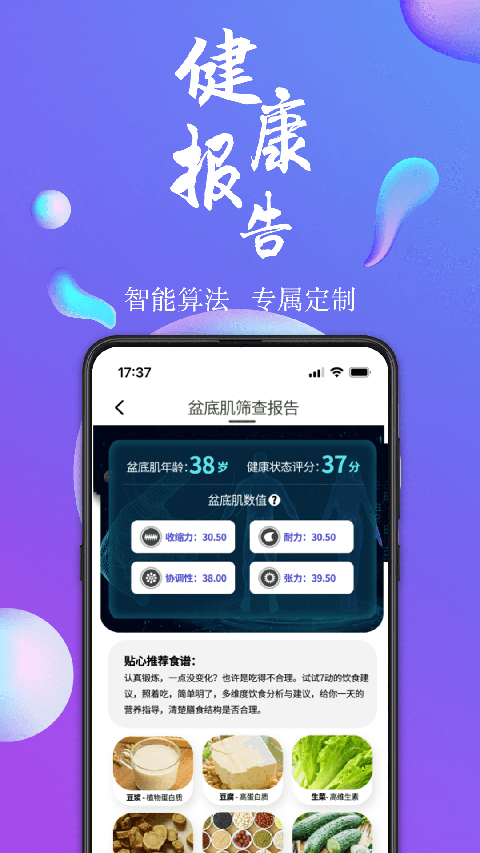 【盆底肌分值训练】系统根据训练强度给与你自身状况匹配的分值,每次训练都能直观方便地看到乐刻运动带来的效果记录;