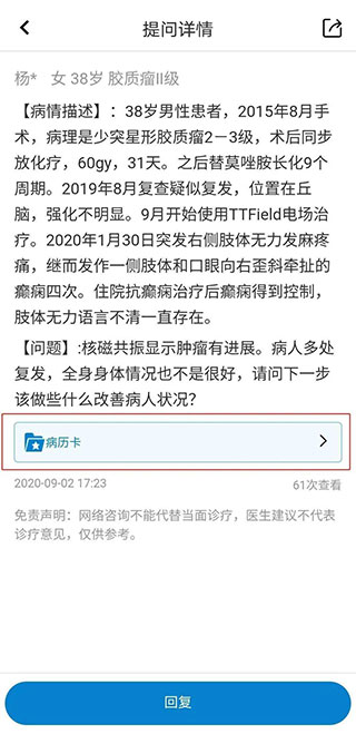 为神经外科、神经介入医生提供一个可自己上传病例的平台,医生可自行上传临床医学病例相关的CT和MRI图片、医学视频、文献,邀请同行进行评论互动和学习交流。