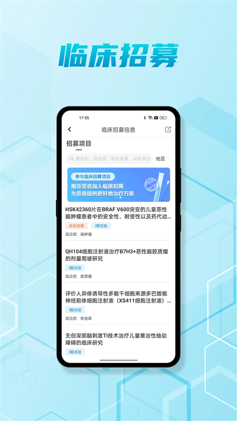 1.【全局搜索】结果新增临床招募内容,提升用户体验;